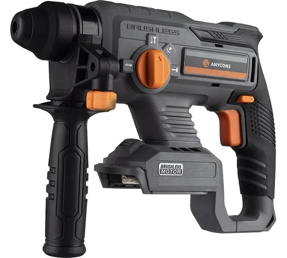 Аккумуляторный бесщеточный перфоратор Anycons с патроном SDS+ и силой удара 2Дж используется для простого и ударного сверления в древесине, металле, пластике.