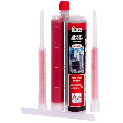 Химический анкер IRFix PRO 5000 - это двухкомпонентная инъекционная система на основе эпоксидной смолы. Продукт обладает исключительной прочностью сцепления и в первую очередь предназначен для анкерования резьбовых стержней и арматурных стержней в бетон, обычно используется в высокопроизводительных конструкциях, где нагрузка является критической.