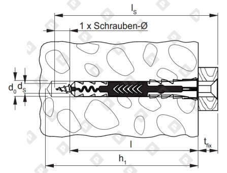 Материал основания: Пригоден для использования в бетоне, полнотелом/пустотелом кирпиче (в том числе силикатном), кирпиче с вертикальными пустотами, гипсокартоне, ГВЛ, пустотелых плитах, в натуральном камне, ДСП.